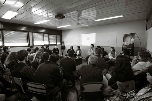 Más tarde, Rocío Pereyra, presidente del Centro de Estudiantes de la FACSO, y Belén Cardozo, integrante de la producción de Radio Universidad, presentaron "Haciendo Escuela", el programa que es realizado por estudiantes de escuelas secundarias quienes reciben una capacitación especial que consiste en varios encuentros para generar un programa de radio. Este sistema de trabajo fue explicado considerando la transferencia de conocimientos que la universidad realiza en las escuelas secundarias y lo que capitaliza sobre conocimientos que aportan los jóvenes actualmente. Los resultados de esta ‘ida y vuelta’, son reformulados en el mismo medio de comunicación para contenidos específicos destinados al sector juvenil.