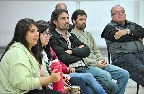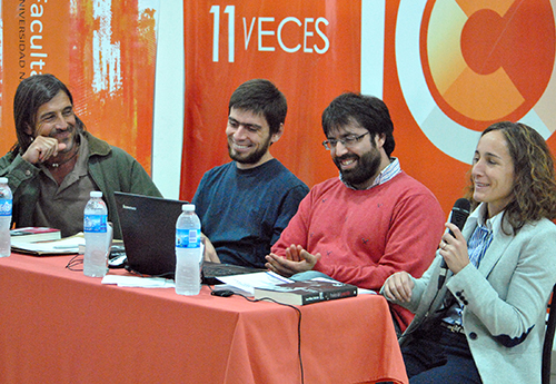 Los encargados de presentar a los autores fueron el profesor Jorge Salduondo, docente de la Facultad de Ciencias Sociales y la Dra. Mariana Catanzaro, abogada especialista en Derechos Humanos e integrante de la Asamblea Permanente por los Derechos Humanos local. Estuvieron presentes además el Decano de la FACSO, Dr. Rafael Curtoni, integrantes de distintas agrupaciones de Derechos Humanos y público en general que se acercó a escuchar a los autores de esta investigación.