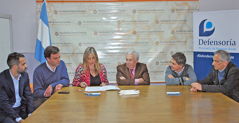 Este jueves se realizó en la Facultad de Ciencias Sociales la firma de un convenio marco entre la Universidad Nacional del Centro y la Defensoría del Pueblo de la Provincia de Buenos Aires.
