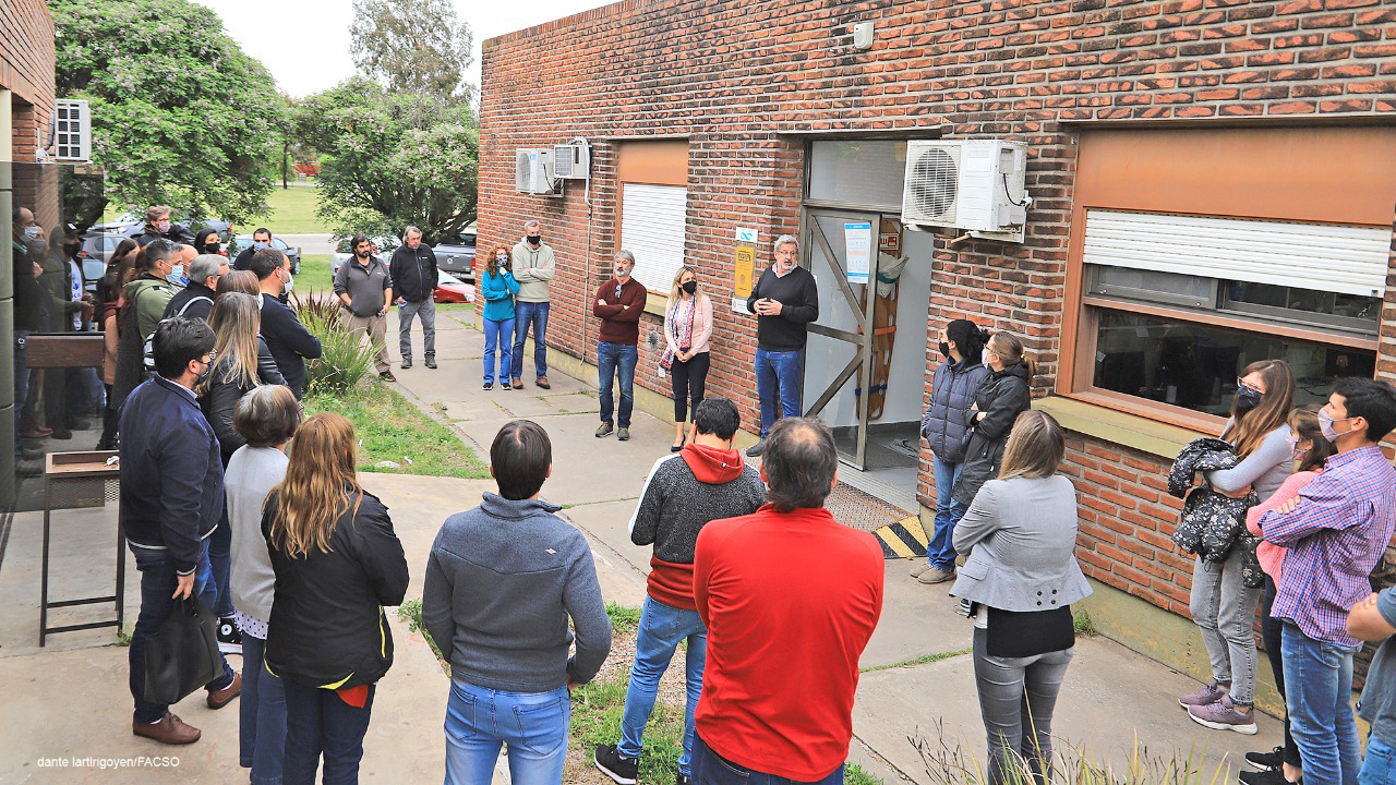 El homenaje fue encabezado por la decana de la FACSO, Lic. Gabriela Gamberini; el director del Instituto INCUAPA, Dr. Gustavo Politis, el codirector del