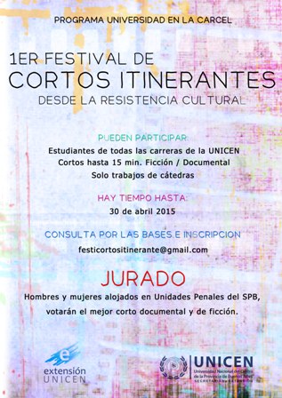 04/15 El Centro Cultural Itinerante del Programa Universidad en la Cárcel dependiente de la Secretaría de Extensión de la UNICEN convoca a estudiantes de todas las carreras al 1er Festival de Cortos itinerantes: desde la resistencia cultural. LEER MÁS