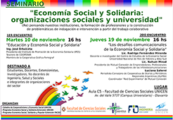 11/2015 Los días 10 y 19 de noviembre a las 16 hs. la Facultad de Ciencias Sociales será sede del Seminario “Economía Social y Solidaria: organizaciones sociales y universidad”. La actividad, destinada a estudiantes, docentes, investigadores, extensionistas e integrantes de organizaciones del sector, está organizada en forma conjunta por la Cátedra de Cooperativismo y Economía Social de la UNICEN, el Programa Economía Social y Solidaria de la Secretaría de Extensión de la UNICEN y el Programa Economía Social, Solidaria y Popular de FACSO. LEER MÁS