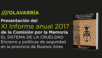 23/10/2017 - Este miércoles a las 14 horas en el aula C9 del Complejo Universitario de Olavarría se presentará el XI Informe anual 2017 de la Comisión por la Memoria, en el que se expone la situación del sistema penal.