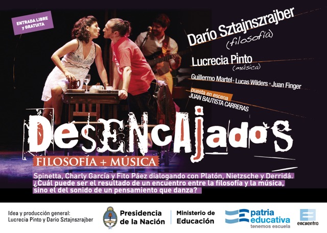 El jueves 2 de julio a las 20.30 hs. el Teatro Municipal recibirá el espectáculo de música y filosofía Desencajados, que protagoniza el reconocido filósofo Darío Sztanjszrajber. Está auspiciado por el Ministerio de Educación de la Nación y la Facultad de Ciencias Sociales.