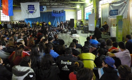 26/06/2015 Ante un notable marco de público el artista Cesar González (Camilo Blajaquis) contó hoy su experiencia de vida en el conversatorio desarrollado en el SUM de la Escuela Media N° 7.